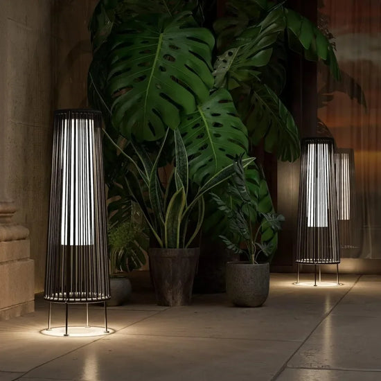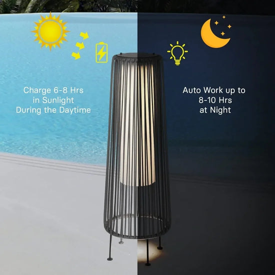 Enhance your outdoor ambiance with this 2-pack of wicker solar floor lamps. Featuring waterproof construction and solar-powered convenience, these stylish patio lamps are perfect for porches, decks, gardens, and lawns.